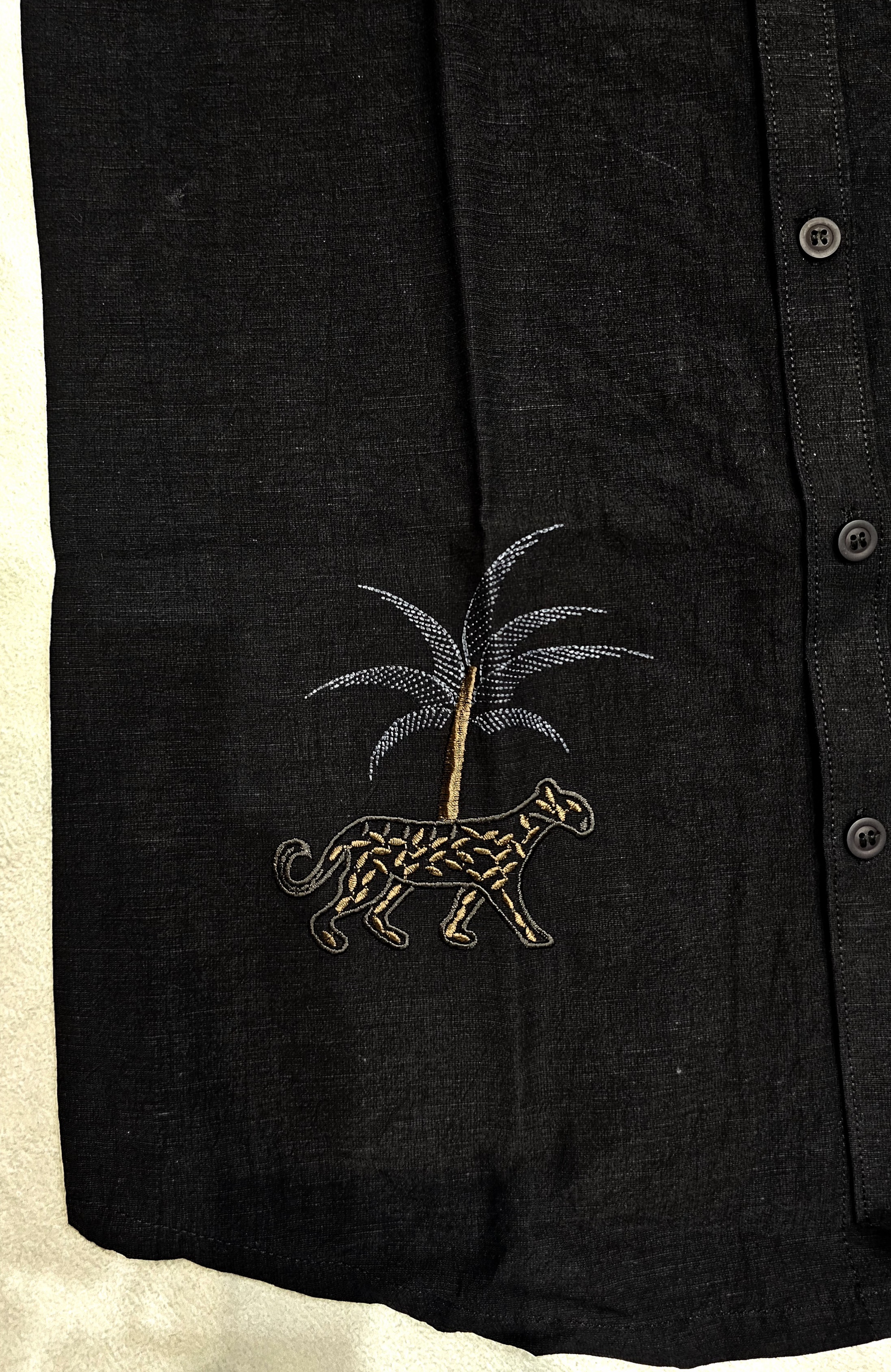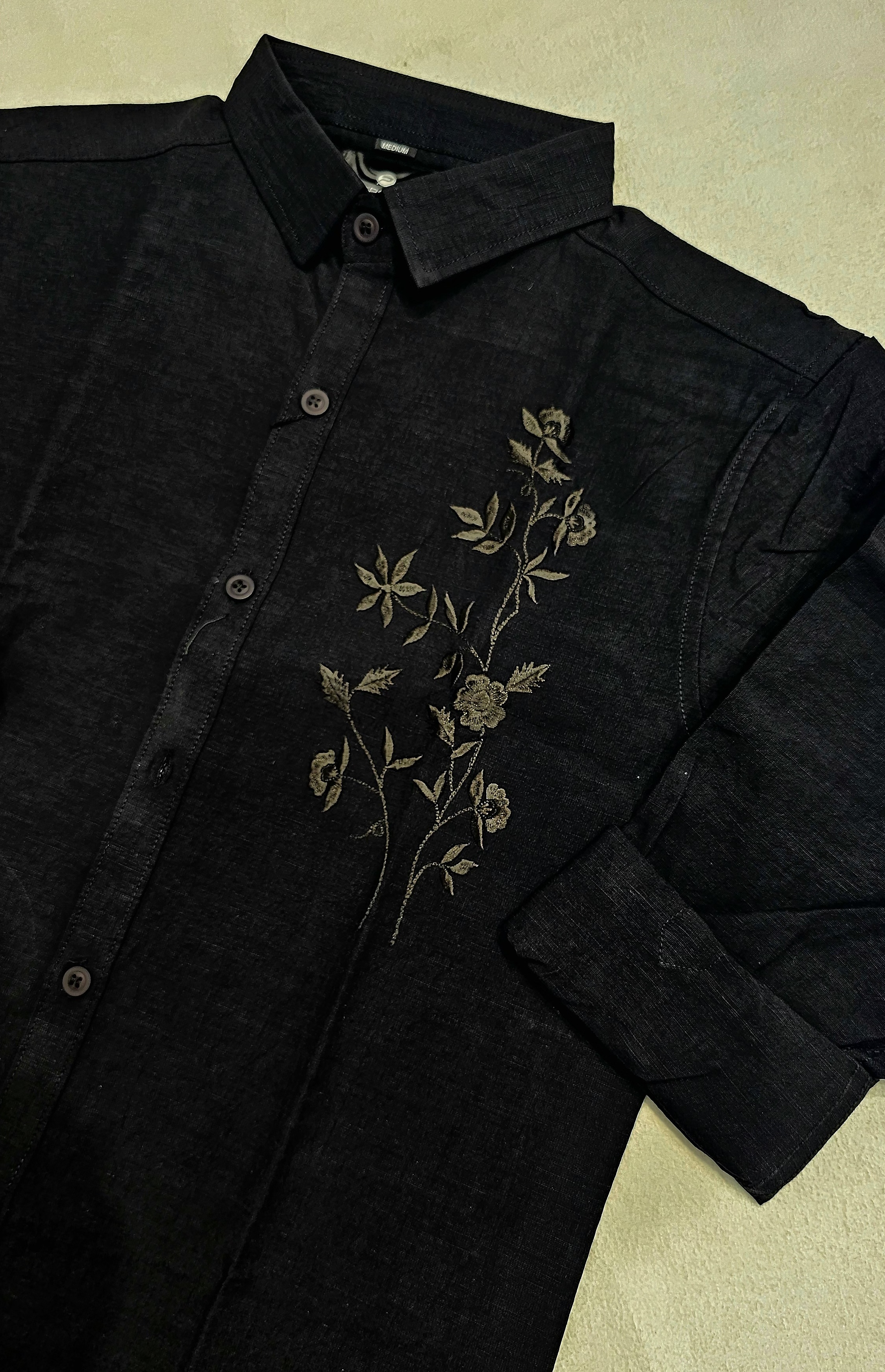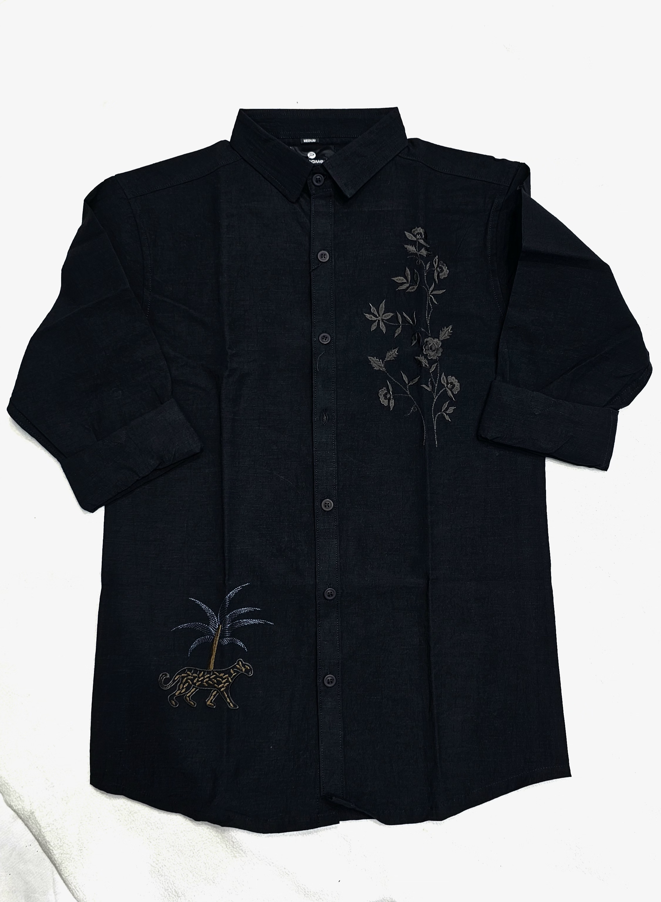 Make a bold style statement with our dark black -coloured Embroidered thread work patch shirt. Featuring intricate embroidery and contrast patch detailing, this shirt combines traditional craftsmanship with modern design. Perfect for evening wear, parties, or smart-casual outings, it’s made to stand out effortlessly.