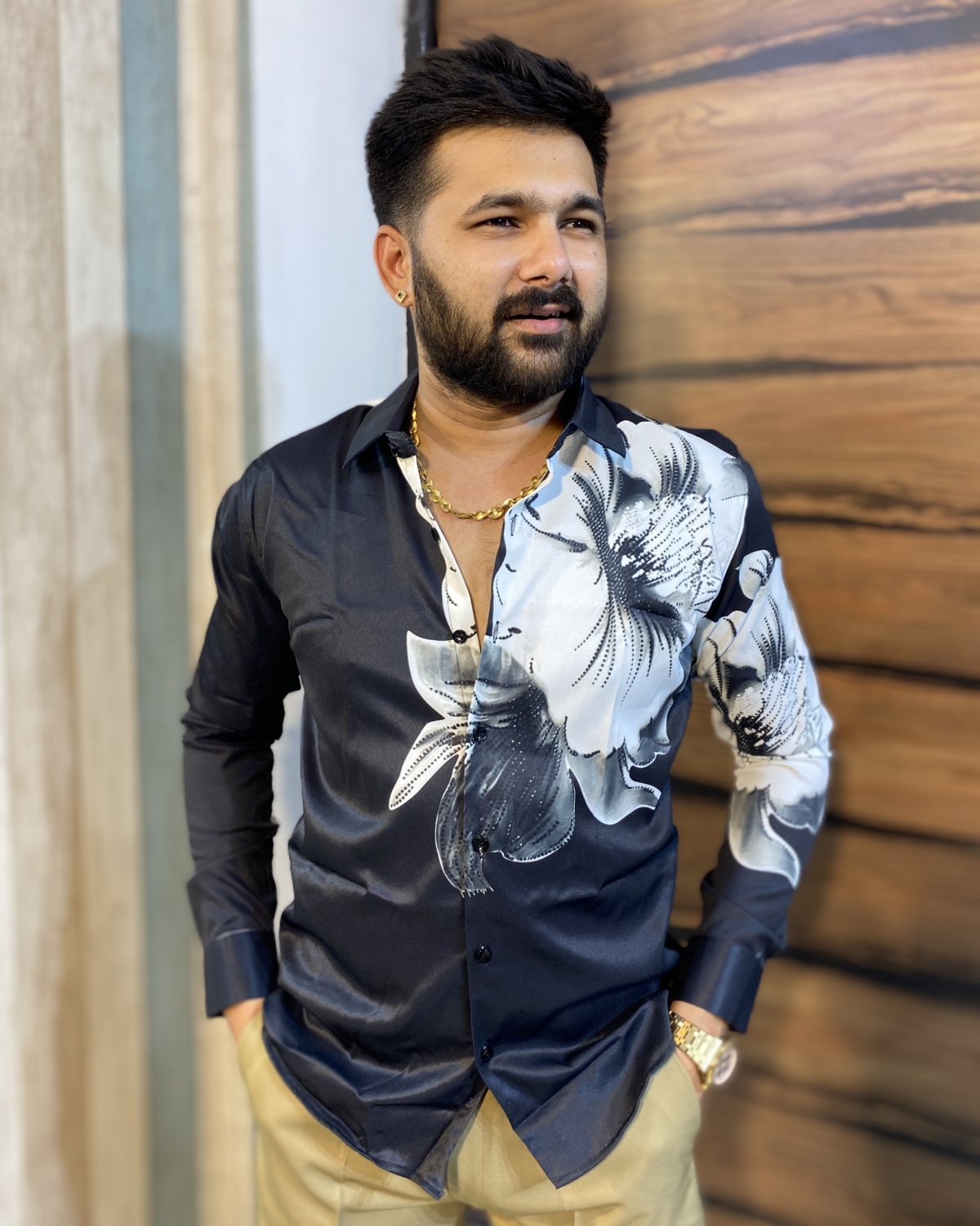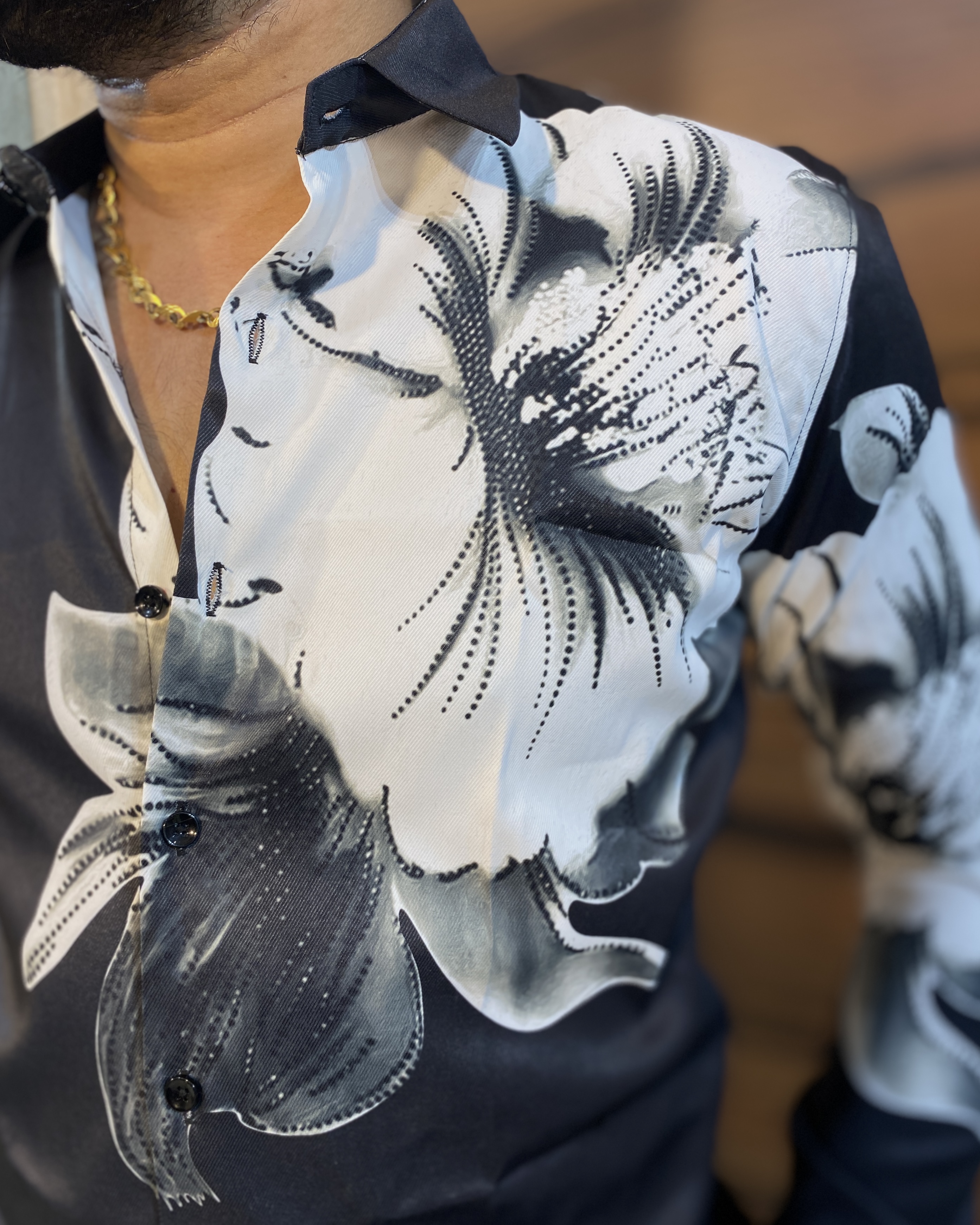 Step into effortless style with our Navy Blue Floral Statement Shirt, designed for men who appreciate a perfect blend of sophistication and boldness. This shirt features a striking oversized floral print in sky blue and white across the shoulder and chest, creating a modern and eye-catching contrast against the deep navy backdrop. Crafted from premium, breathable fabric, it ensures comfort for all-day wear while maintaining a sleek, tailored fit. Ideal for parties, casual outings, and evening events, this shirt is the go-to choice for a confident and stylish look.
