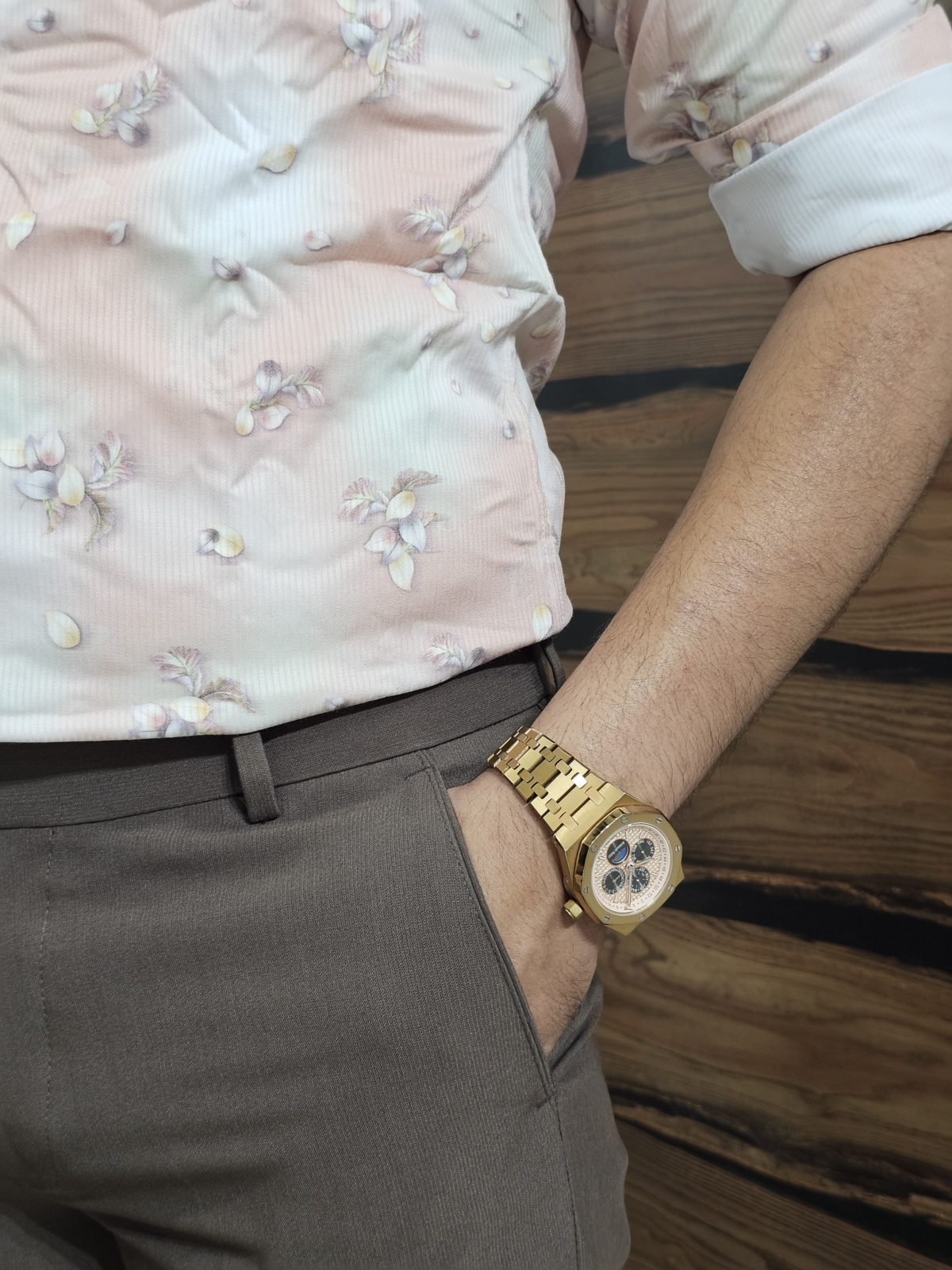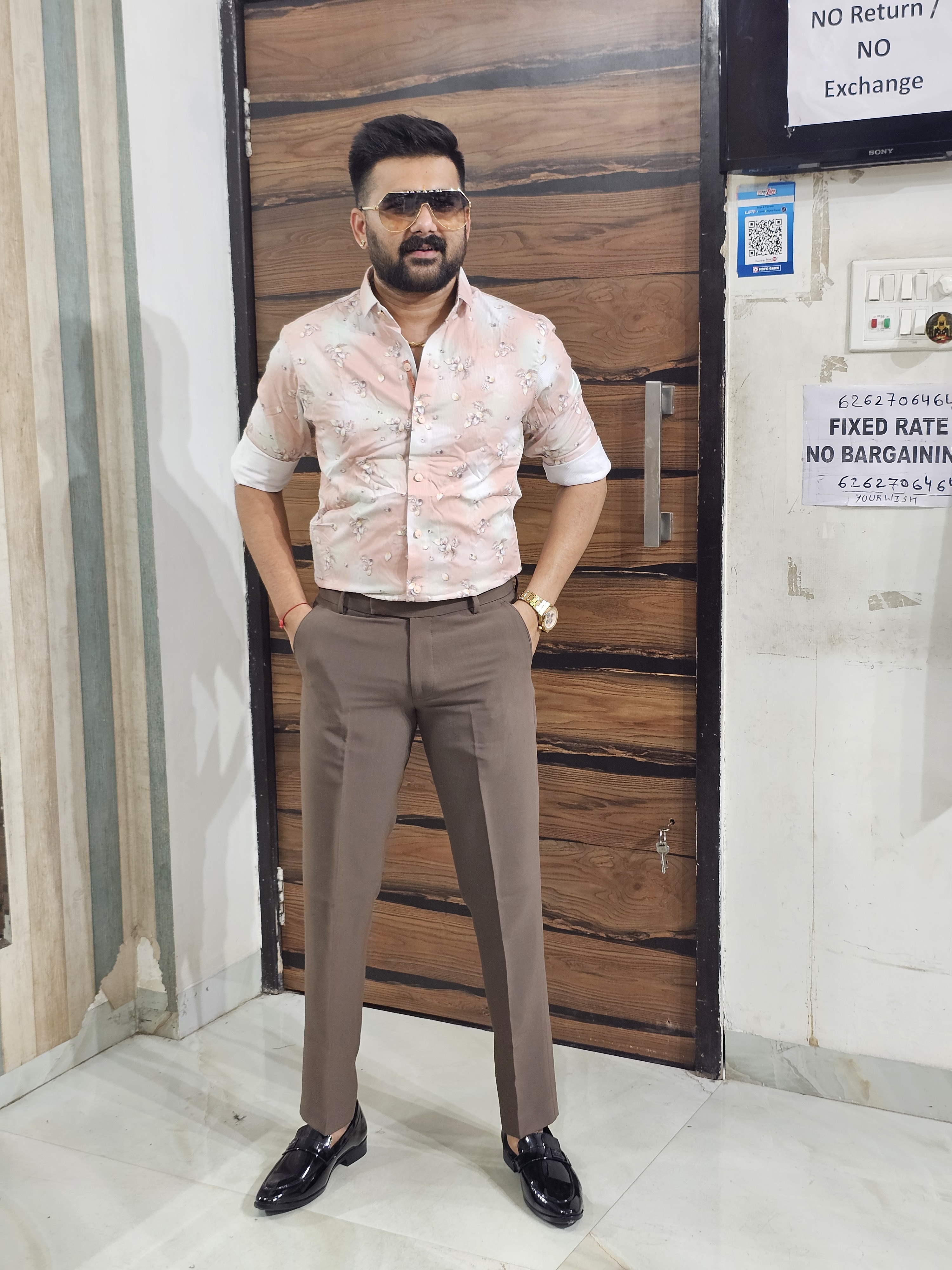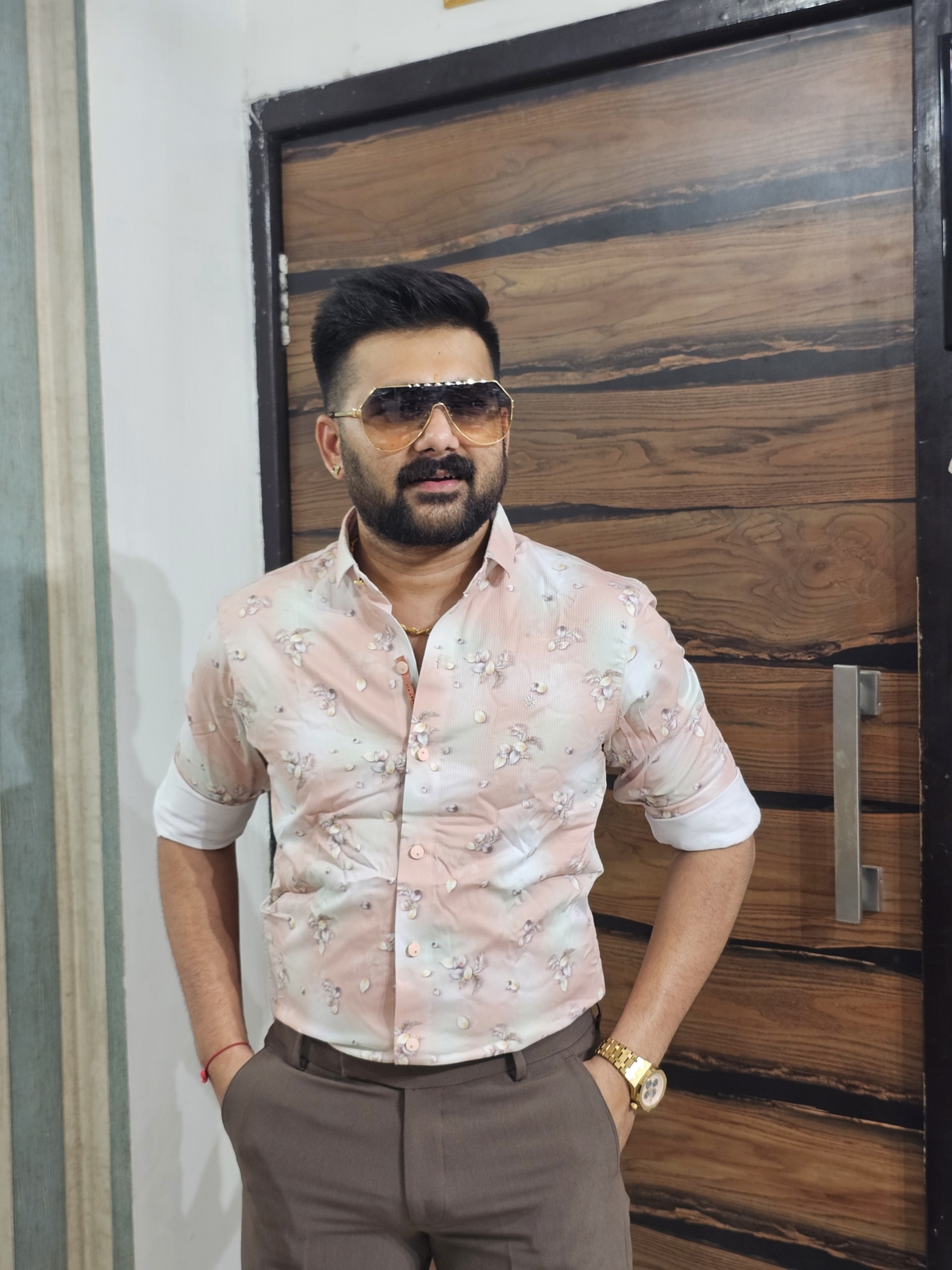 🔹 Men’s  Printed Shirt – Soft pink with Subtle Pastel Accents