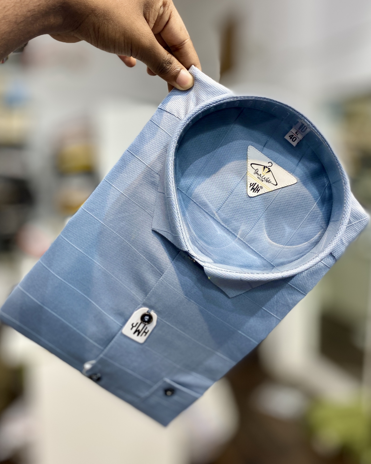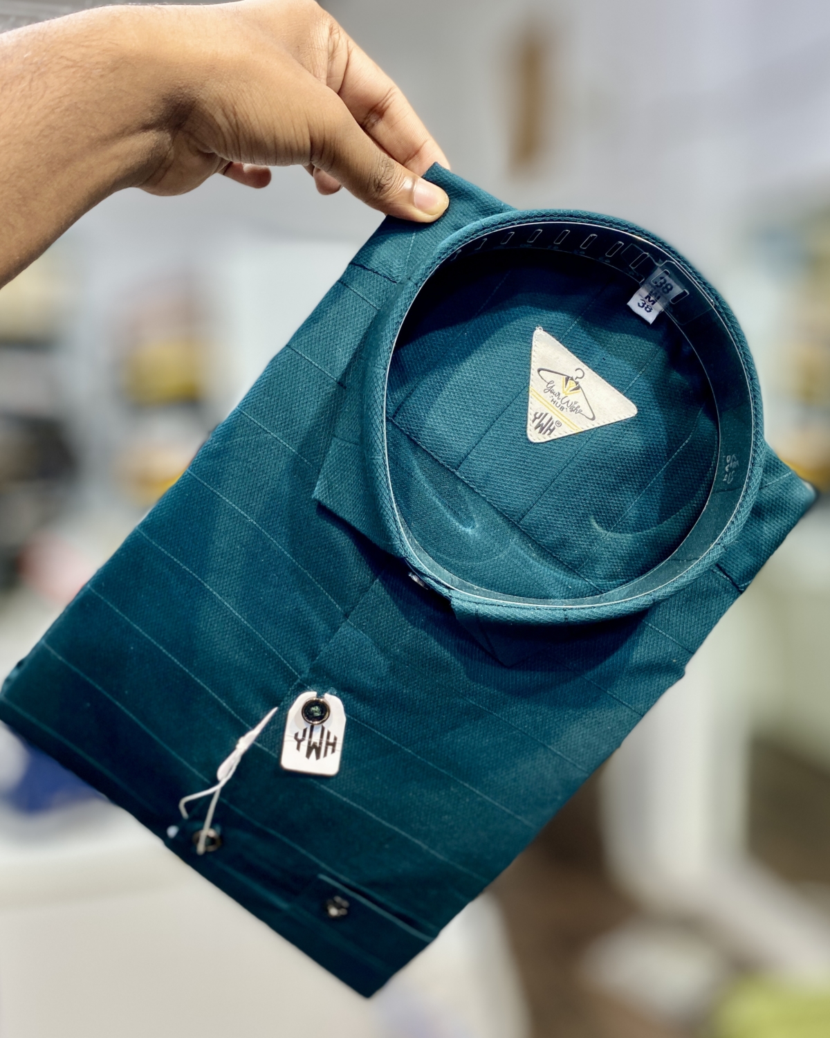 A perfect blend of classic charm and modern finesse, this Teal Blue & Sky Blue & Rich Maroon Textured Shirt features subtle horizontal stripes on premium woven fabric. It brings elegance to both professional and semi-formal occasions.